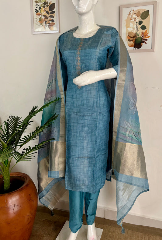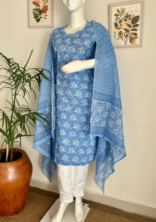 Breezy Elegance: The Blue Handblock Kurta Set for Effortless Style