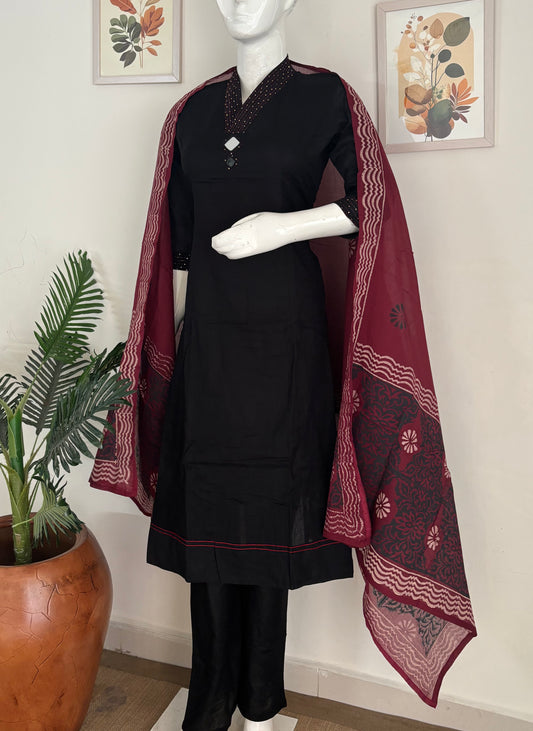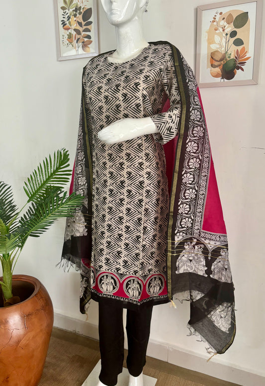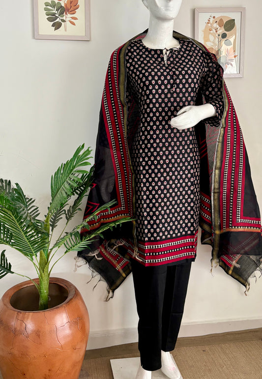 Black Elegance β Pure Maheshwari Silk Kurta Set with Bagh Print