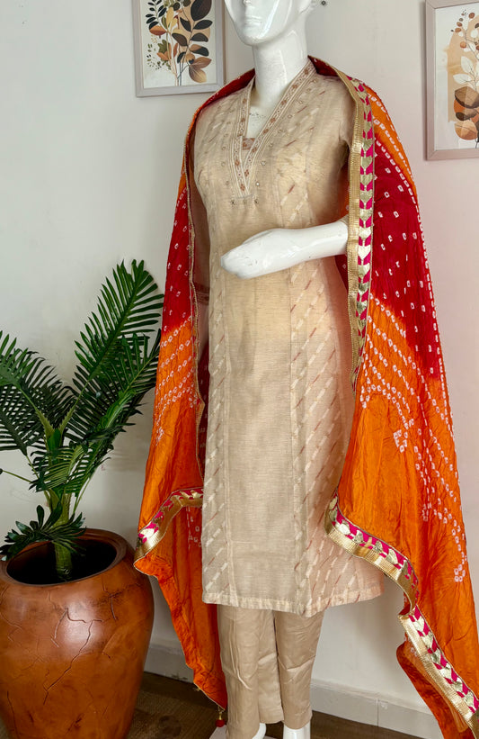 Elegant Beige Linen-Silk Jamdani Kurta Set