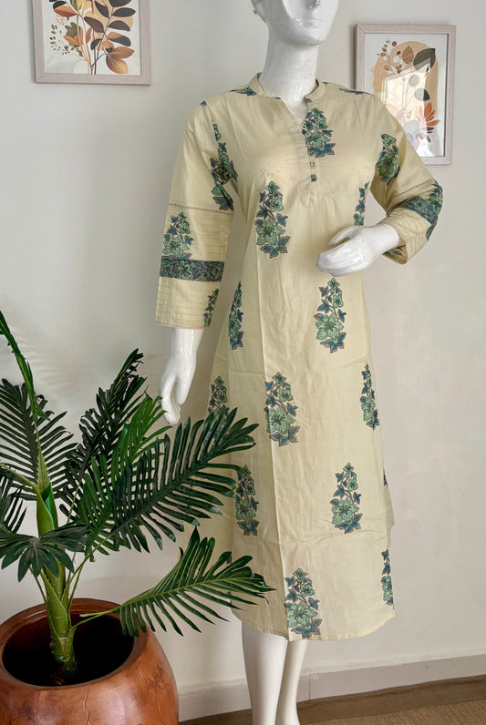 Pure Cotton Handblock Mughal Buta Kurta – Elegant Everyday Essential