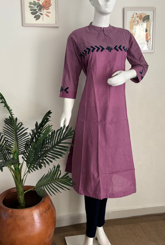 Purple Handloom Cotton Kurta with Appliqué Detailing