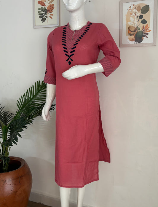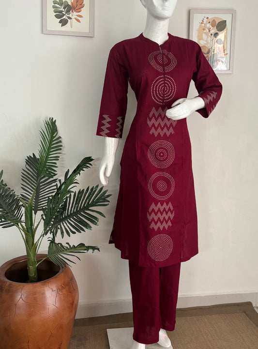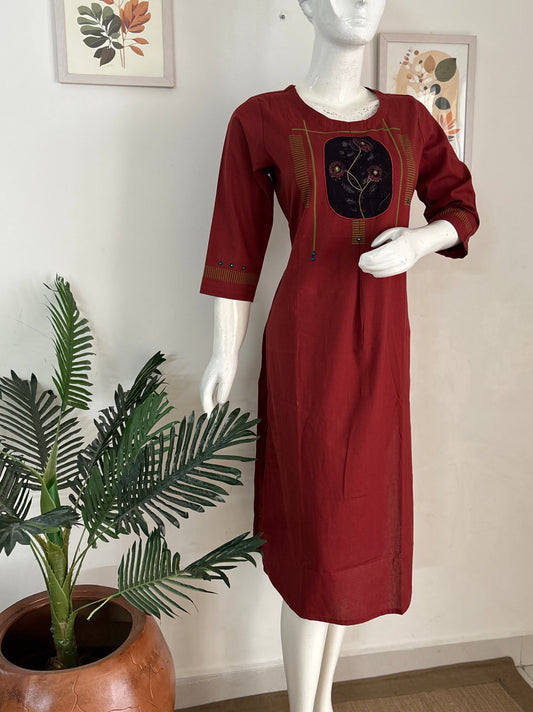 Mehroon Handloom Cotton A-Line Kurta