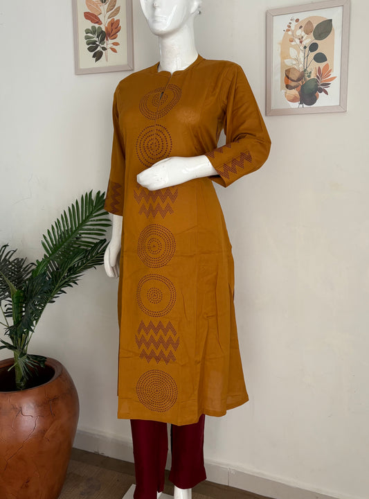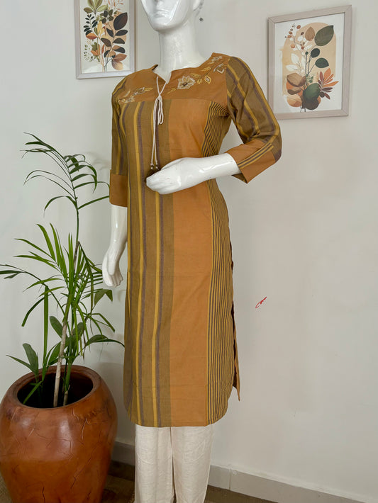 Mustard Handloom Cotton Kurta Set