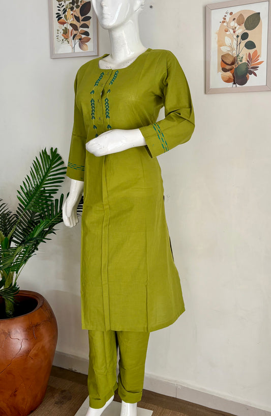 Vibrant Green Handloom Cotton A-Line Kurta Set