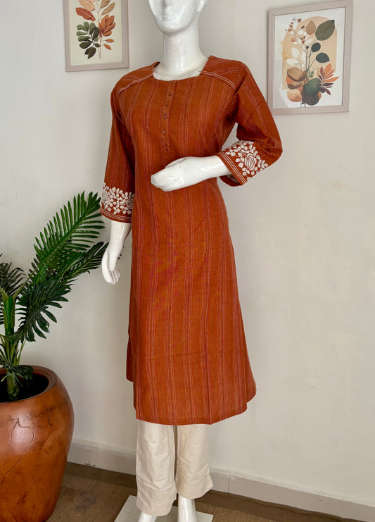 Orange Pure Handloom Cotton Kurta Set