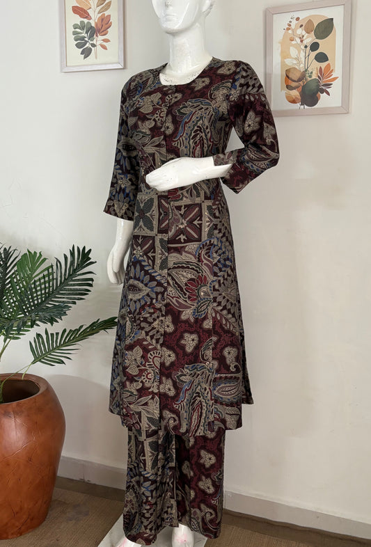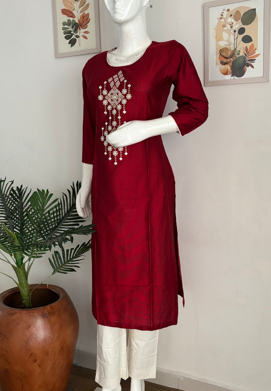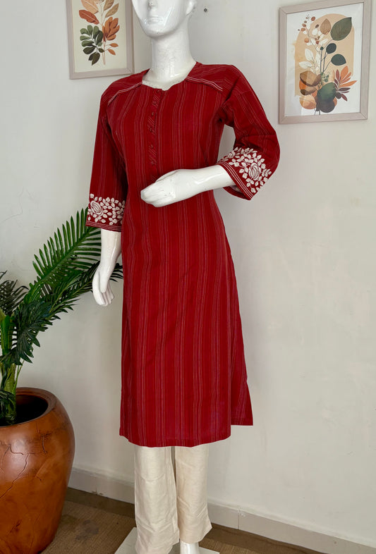 Mehroon Pure Handloom Cotton Kurta Set