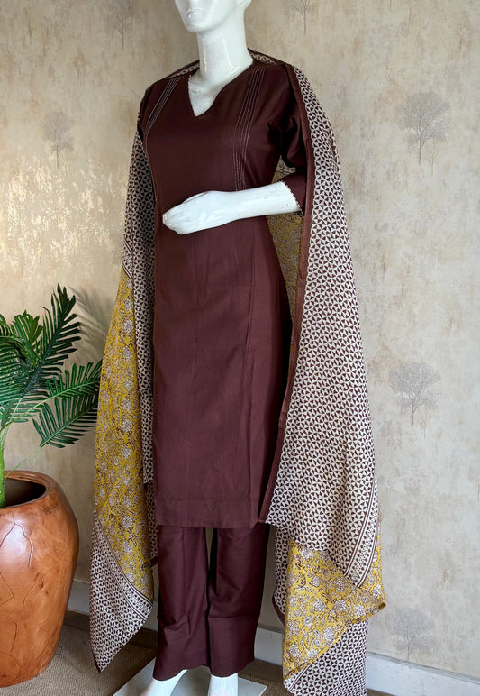 Handloom A-Line Kurta Set with Kalamkari Dupatta