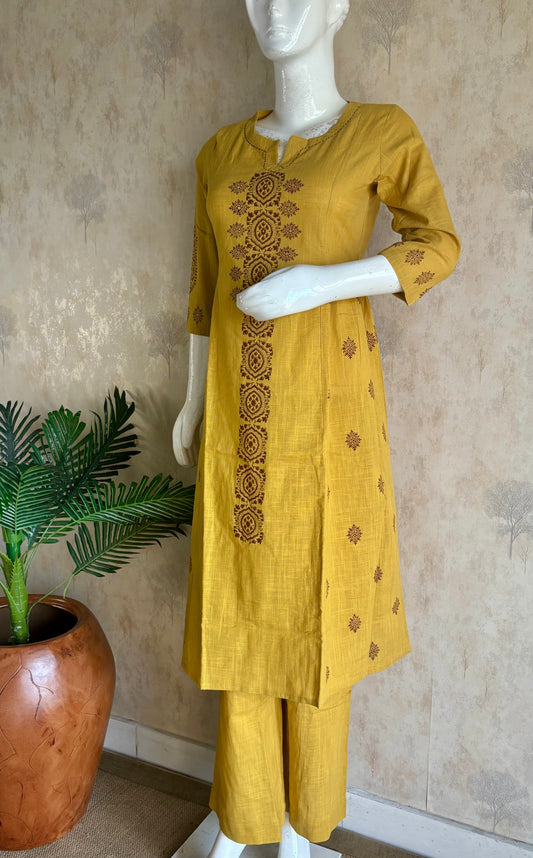 Golden Mustard Handloom Cotton A-Line Kurta Set