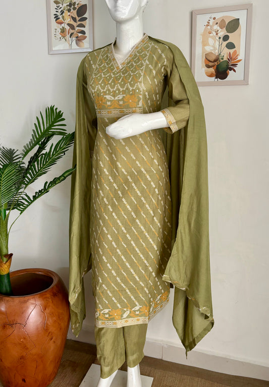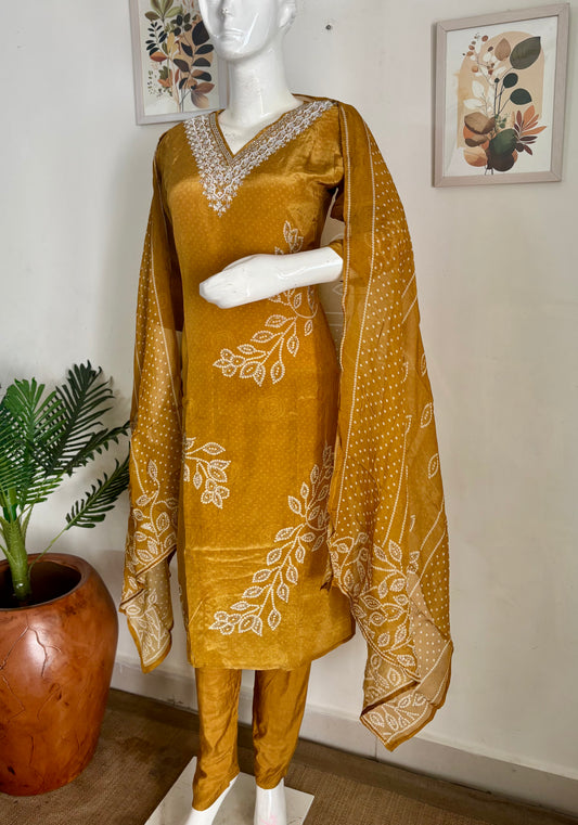 Graceful Mustard Bandhani Crape Silk Suit Set