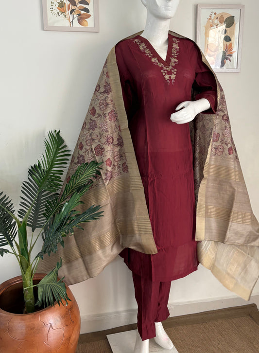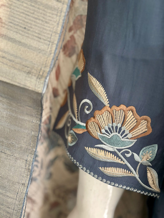 Zehra β Grey & Beige Pure Silk Kurta Set