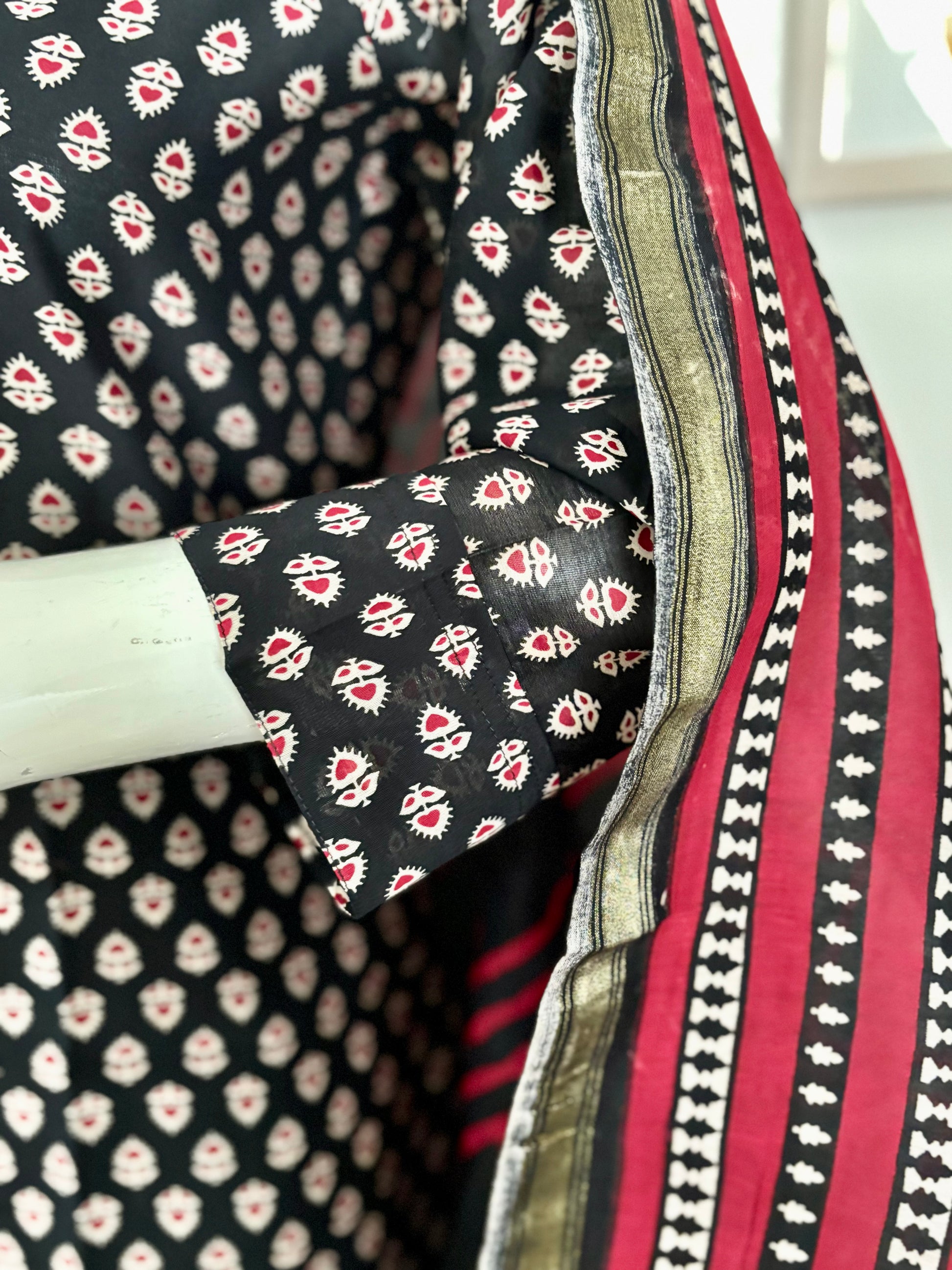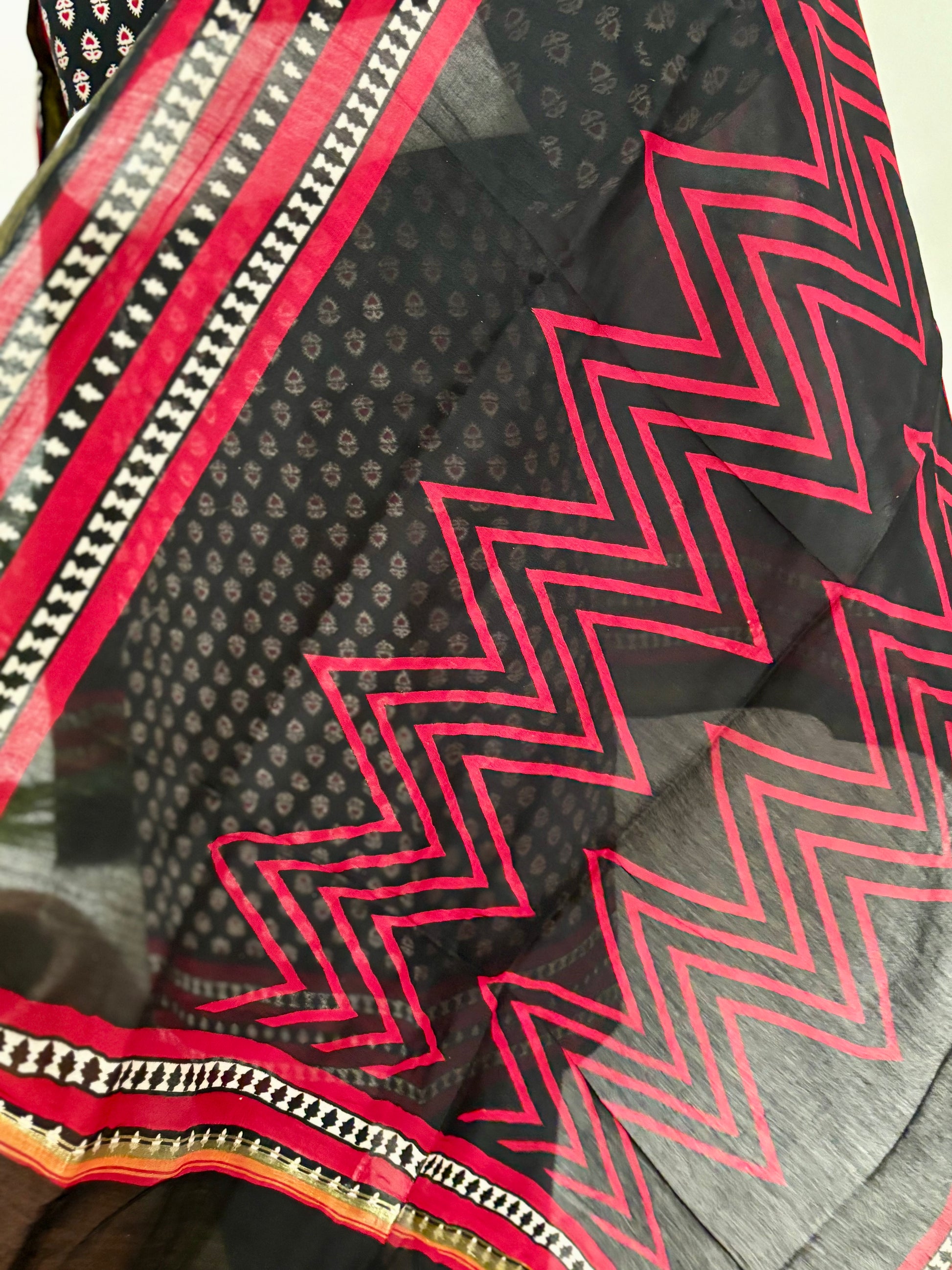 Dupatta: Maheshwari Silk with Black & Red Geometric Print