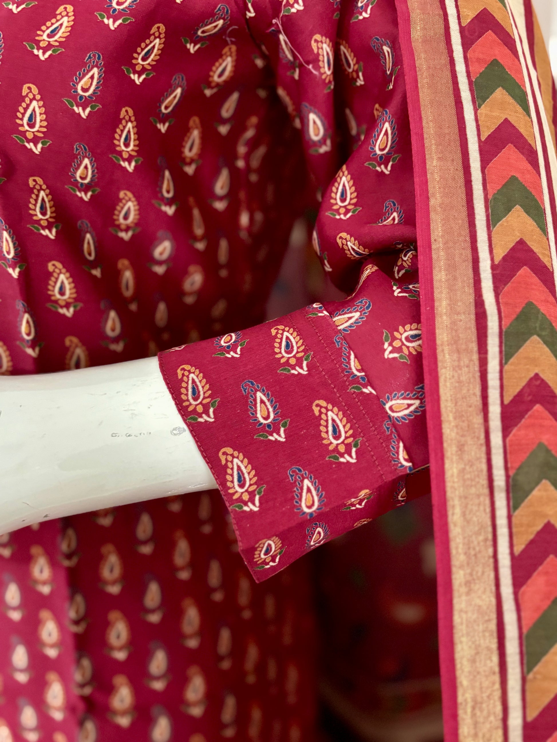 Mehroon Maheshwari Silk Kurta Set with Kalamkari Dupatta
