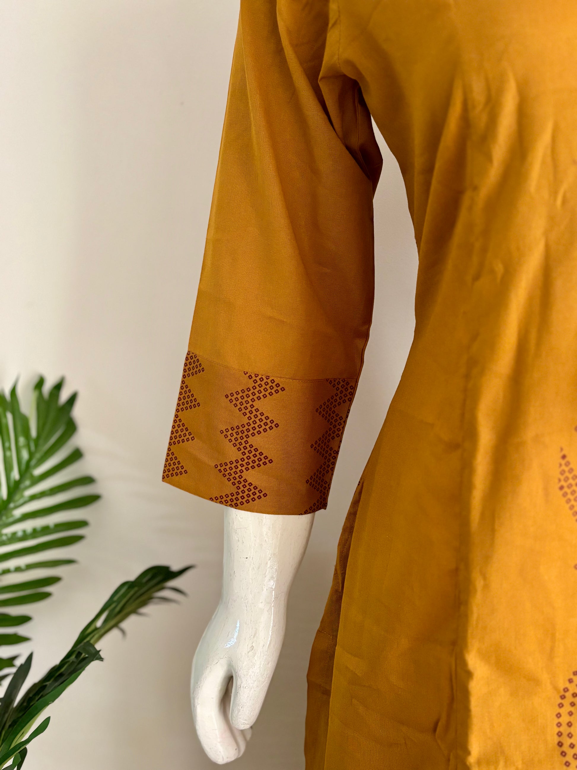 🌼 Colour Combination: Mustard kurta with contrast maroon cotton pants – a timeless, elegant duo