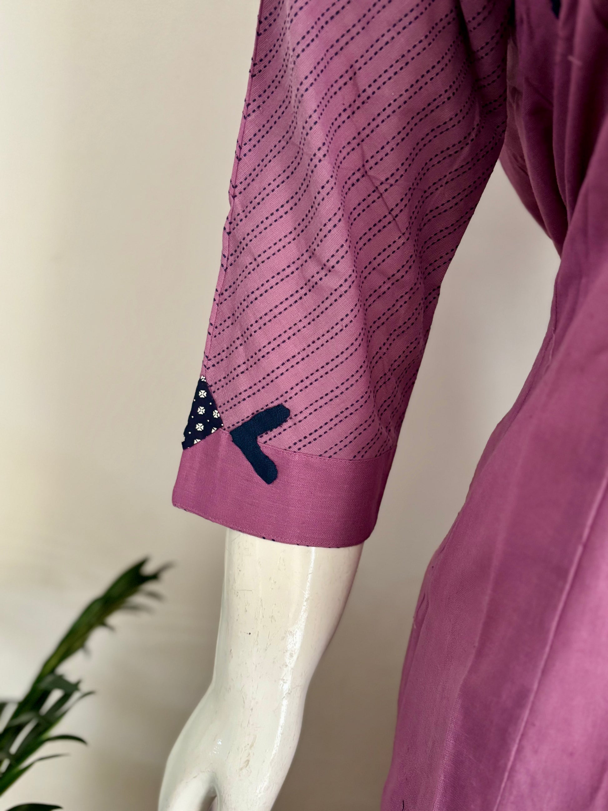 Purple Handloom Cotton Kurta with Appliqué Detailing