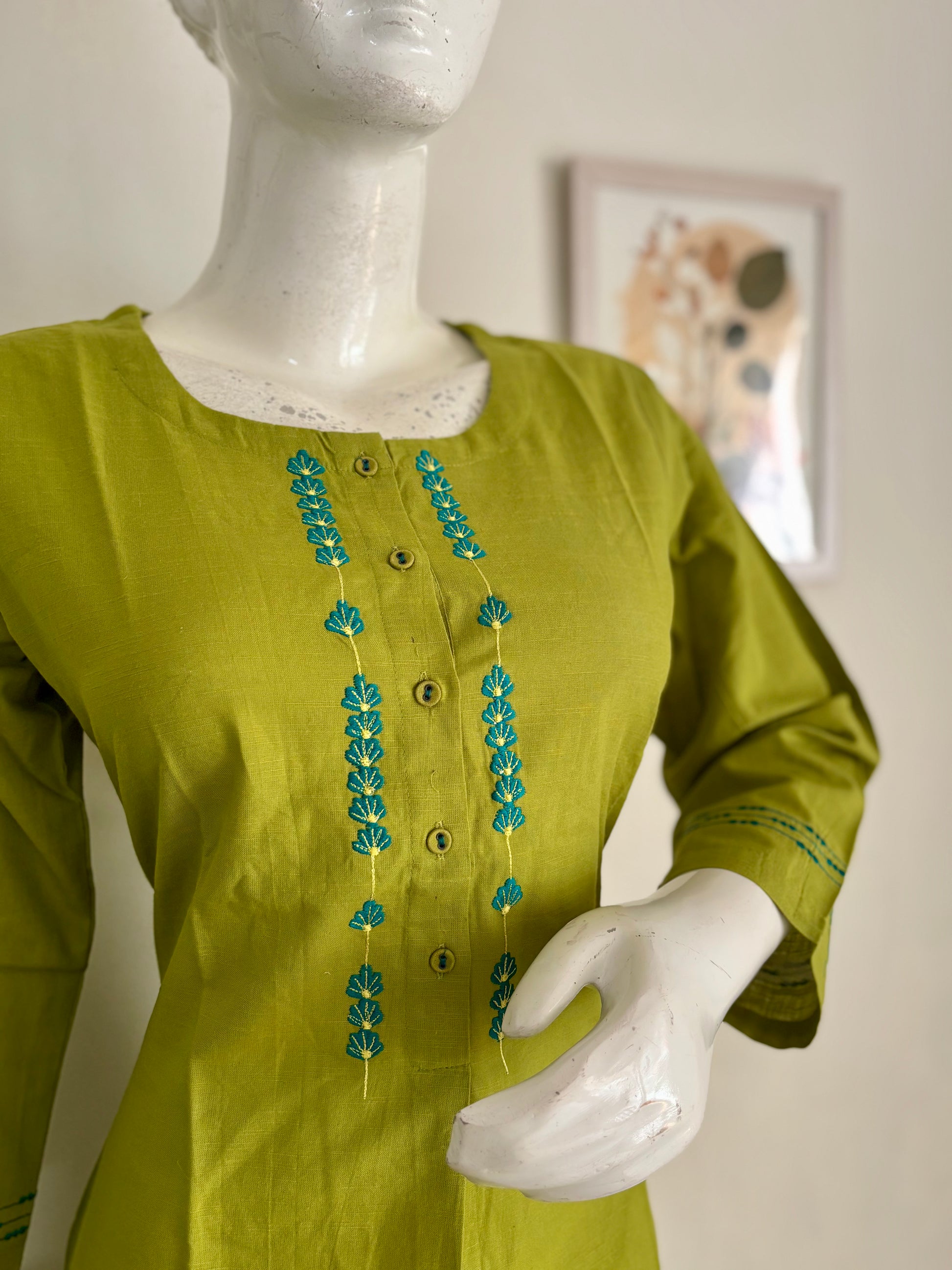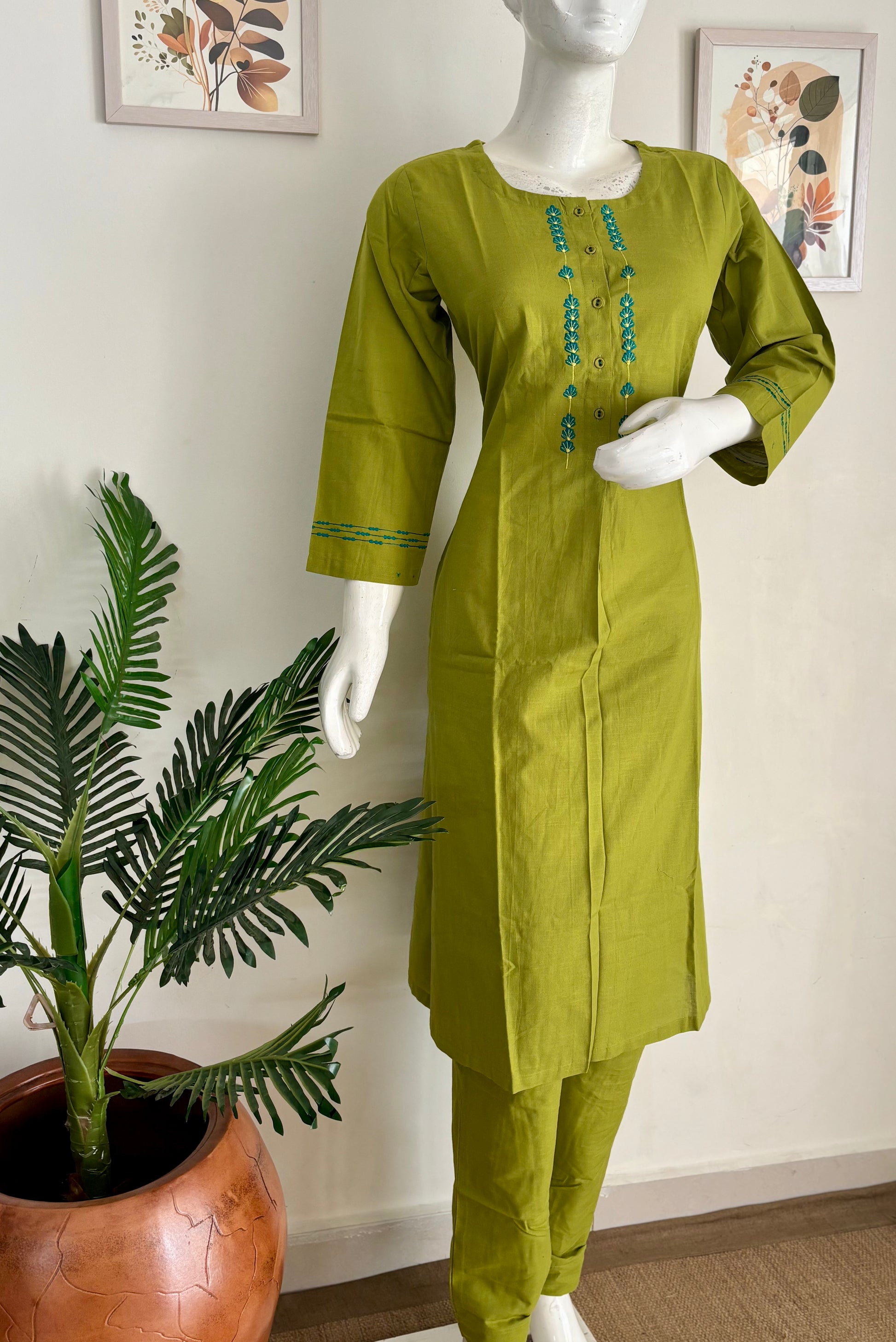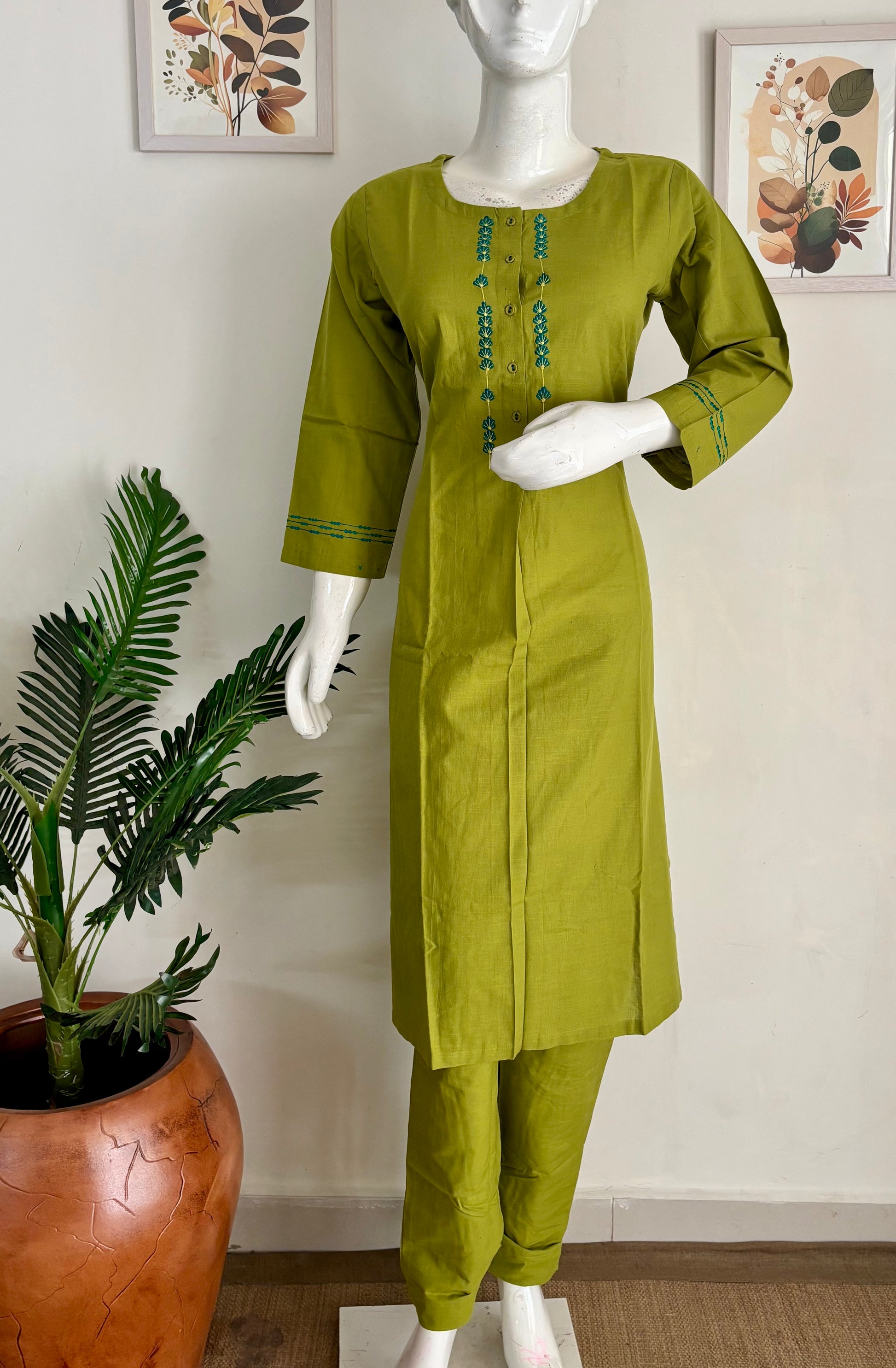 Embrace timeless elegance with our Handloom Cotton Kurta Set in a lively, bright green shade, perfect for those who love combining artistry with comfort.
